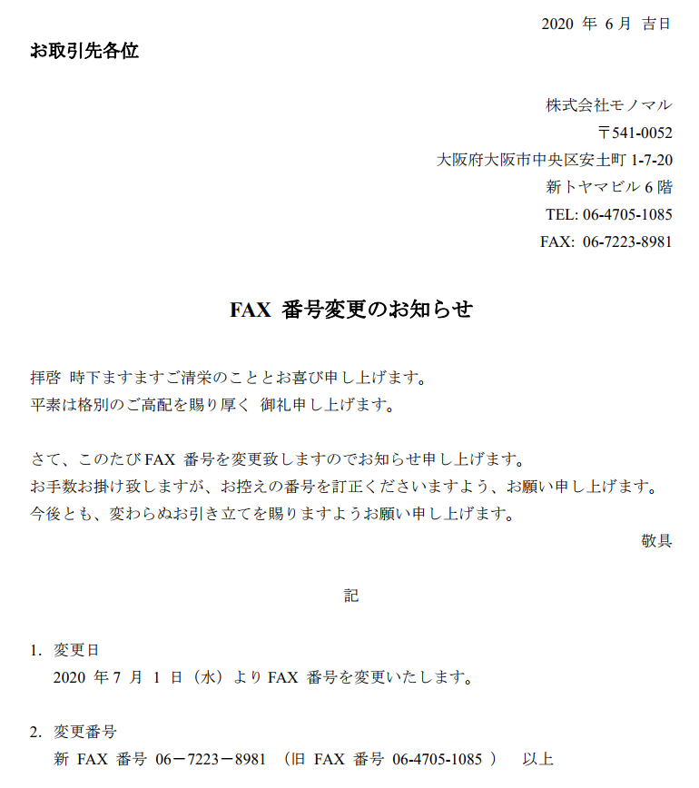 FAX 番号変更のお知らせ